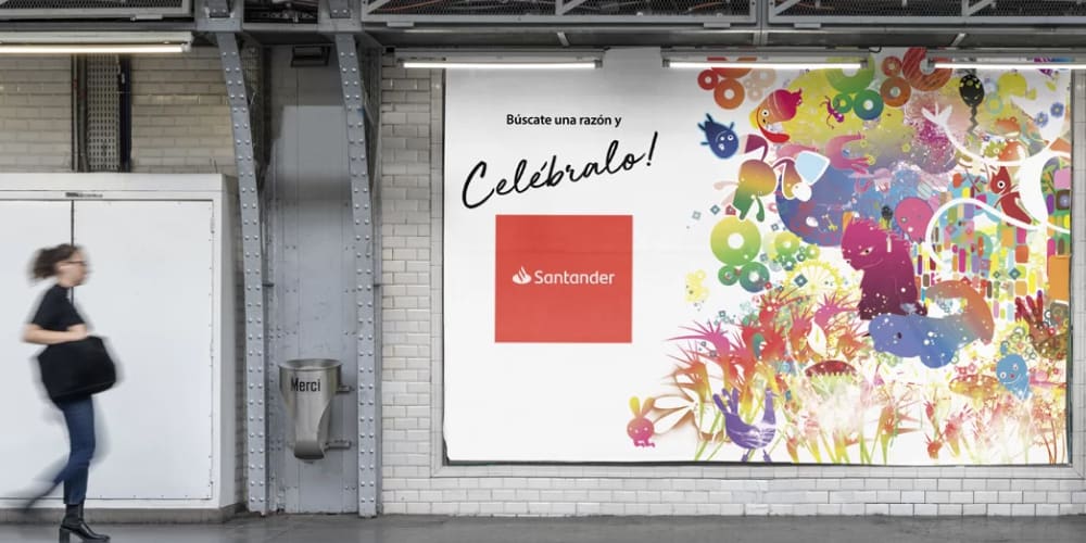 Large displays like city bus stops featured the key animation, accompanied by simple, bold celebratory statements.
